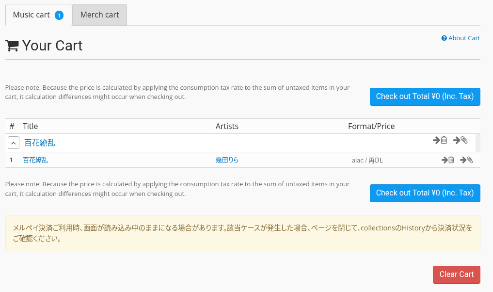 เสร็จแล้วกดไปที่ Cart แล้ว checkout ไปเลยครับ เป็นหน้า checkout ก็จริงแต่ราคา 0 เยนไม่คิดเงิน